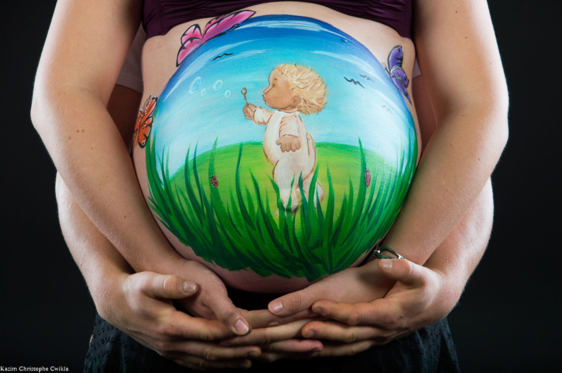 La séance de peinture sur le ventre des femmes enceintes, plus communément appelée « bellypainting » est une expérience unique et originale pour garder le souvenir de cette période si importante de votre vie.